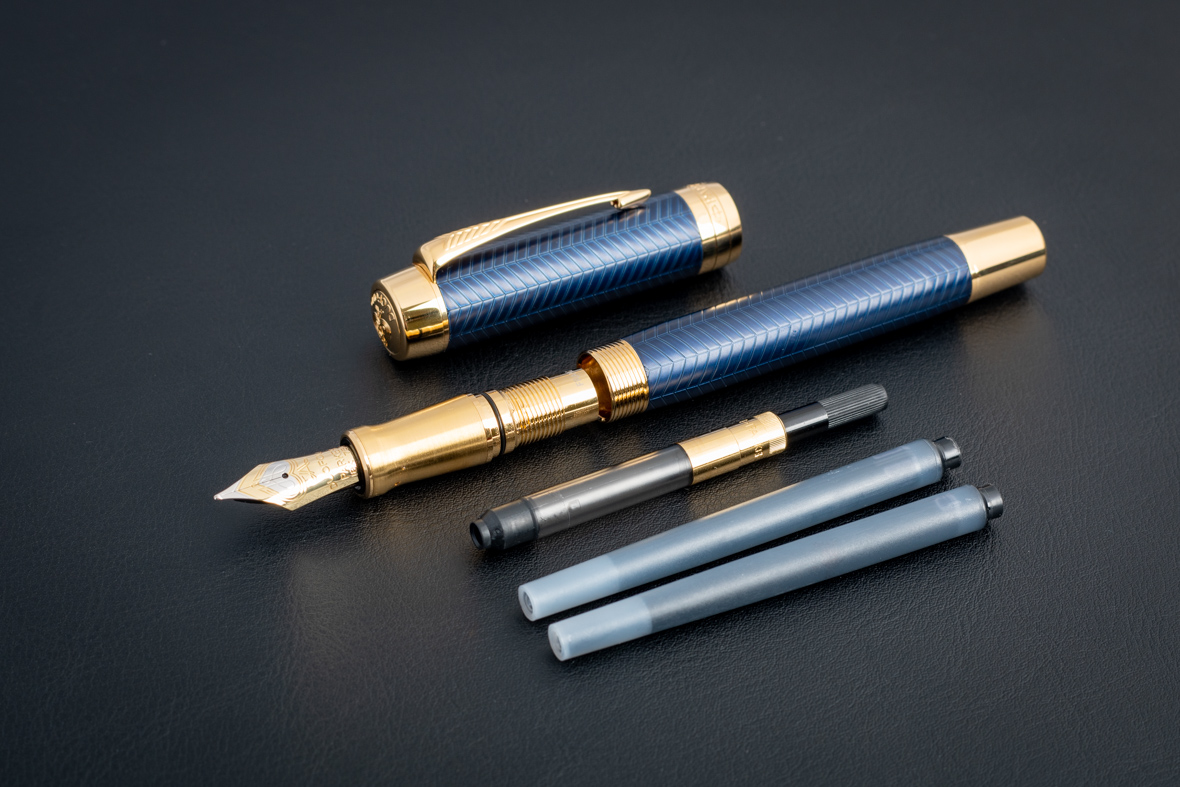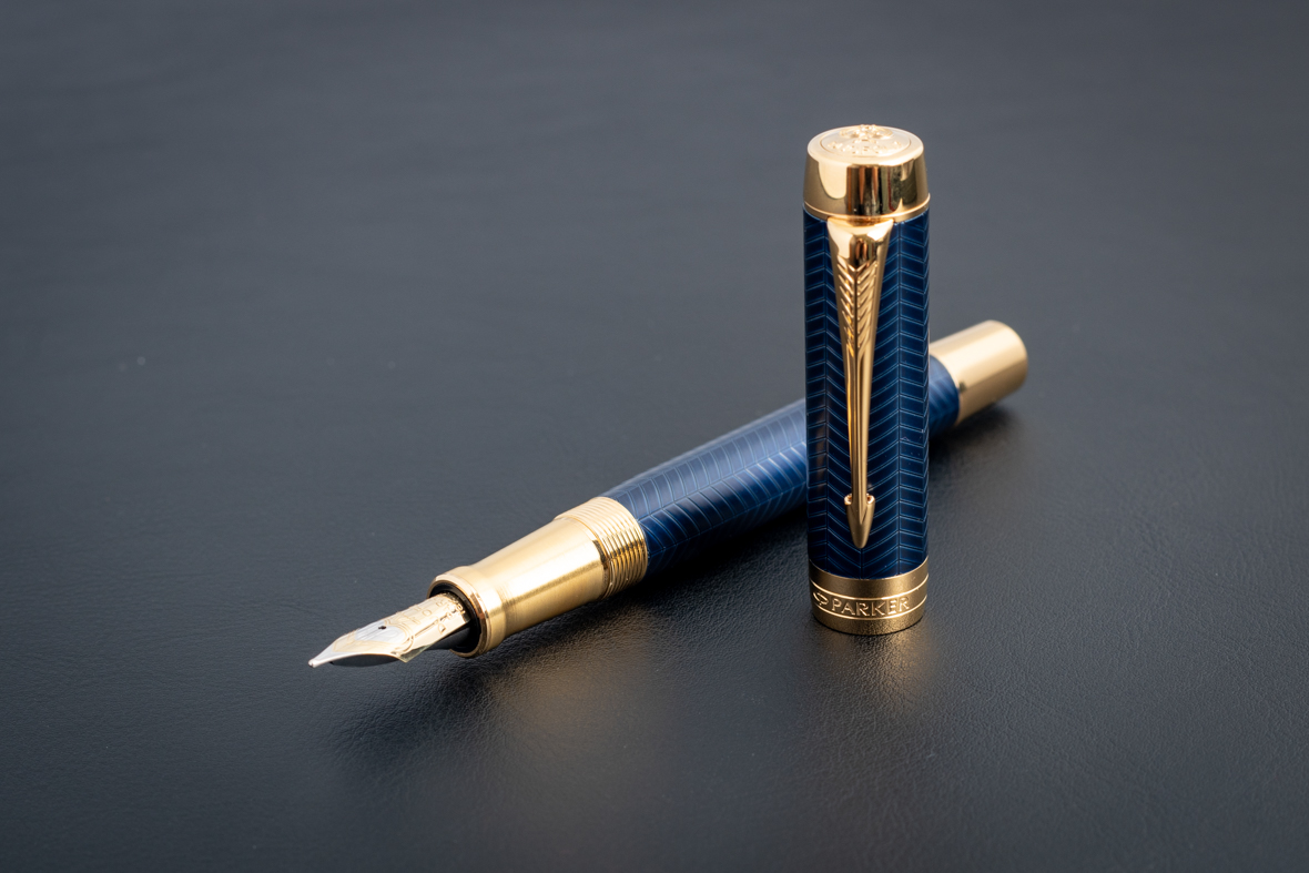 Перьевая ручка Parker Duofold Prestige Centennial Blue Chevron GT (M) от официального дилера Parker в Вологде. Вы можете дополнительно заказать гравировку, которая подчеркнет Вашу оригинальность и придаст памятность статусному подарку. Все ручки Паркер поставляются в фирменном футляре.